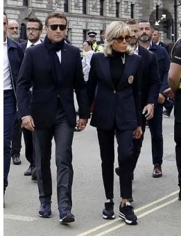 Tổng thống Emmanuel Macron và phu nhân Brigitte đi dạo với đôi giày thể thao. Ảnh: Twitter.