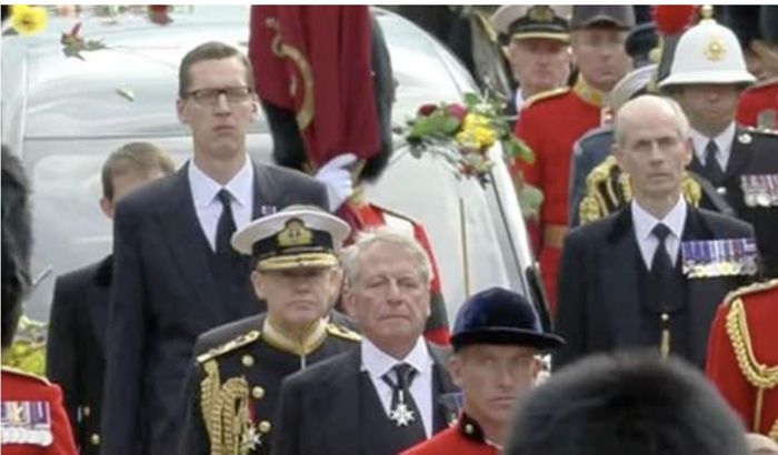 Theo NDTV, những người theo dõi tang lễ của cố Nữ hoàng Anh đã chú ý tới một nam giới mặc vest đen, "cao lạ thường" di chuyển trước quan tài Nữ hoàng. Rất nhiều người đã tò mò về thân thế và danh tính của nhân vật này.