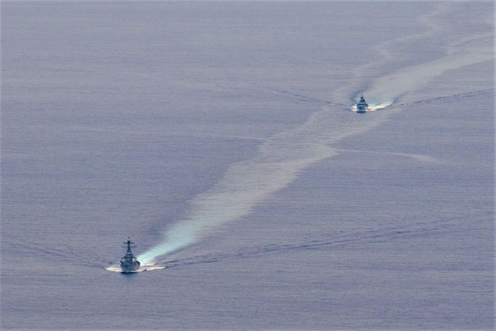 Tàu Higgins và tàu Vancouver đi qua eo biển Đài Loan trong sứ mệnh chung NEON. Ảnh: Canadian Armed Forces