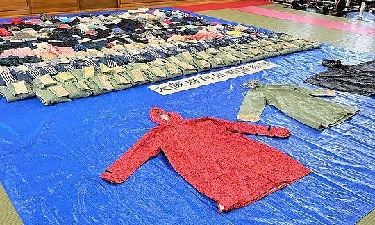 360 áo mưa tang vật bị thu tại nhà ông Yoshido Yoda. Ảnh: Cảnh sát tỉnh Osaka
