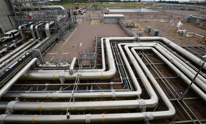 Đường ống tại cơ sở xử lý khí hóa lỏng ở đảo Grain, miền nam nước Anh tháng 8/2013. Ảnh: Reuters.