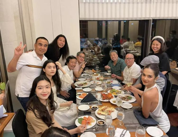 Buổi tiệc sinh nhật của Emma Lê (váy trắng ngoài cùng bên phải) có sự tham dự của dàn đạo diễn, diễn viên đình đám như Dũng "khùng", Vũ Ngọc Đãng...