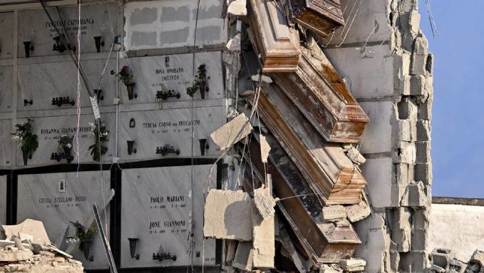 Theo như vào hôm ngày 17/10 vừa qua có một tòa nhà 4 tầng, có chứa các hốc chôn cất, bị sập ở thành phố Naples, Italy, khiến ít nhất hơn 10 quan tài bị treo lơ lửng trên không sau khi tòa nhà 4 tầng bị sập.