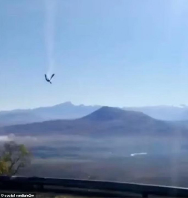 Ảnh chụp từ clip cảnh tàu lượn lao nhanh xuống đất với một làn khói phát ra từ động cơ. Ảnh: Social Media/E2W