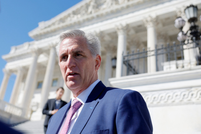 Lãnh đạo phe thiểu số tại Hạ viện Kevin McCarthy phát biểu bên ngoài tòa nhà quốc hội Mỹ ở Washington ngày 29/9. Ảnh: Reuters.