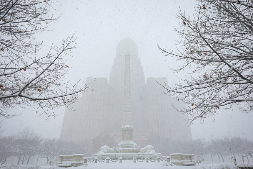 Tòa thị chính Buffalo trong trận bão tuyết ngày 18/11.