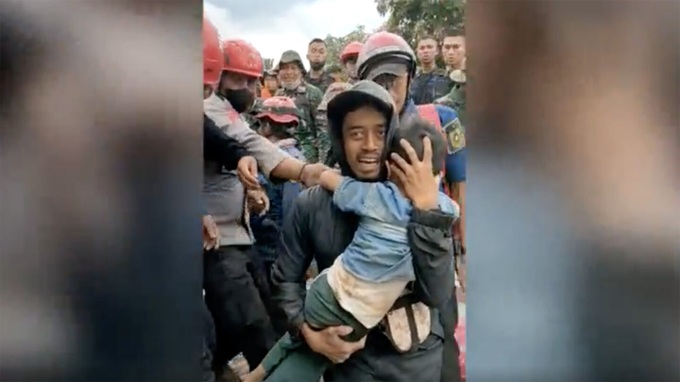 Sau hơn 2 ngày bị vùi lấp trong đống đổ nát do trận động đất ở Indonesia, một bé trai 5 tuổi đã may mắn sống sót và được cứu hộ.