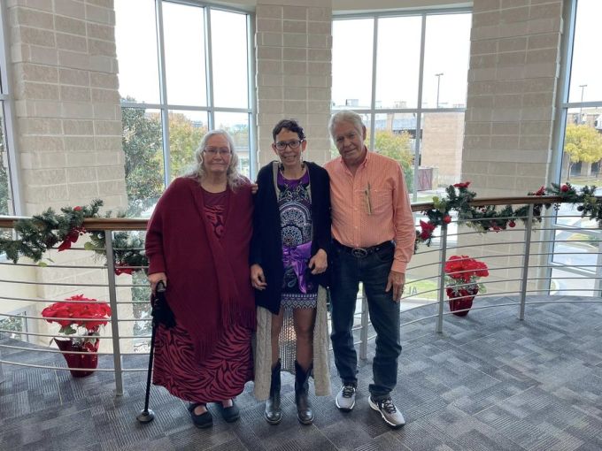 Melissa Higsmith (giữa) đứng cùng cha mẹ tại Fort Worth, Texas, ngày 26/11. Ảnh: Facebook/Sharon Highsmith.