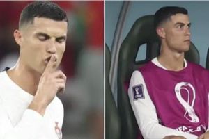 Phong độ của Cristiano Ronaldo tại World Cup 2022 đang không được như ý siêu sao này. Trải qua 3 trận vòng bảng, tiền đạo vừa bị MU thanh lý hợp đồng chỉ có đúng 1 bàn thắng nhờ quả penalty vào lưới ĐT Ghana ở trận ra quân. Trong trận đấu với Uruguay ở lượt trận thứ 2, CR7 ăn mừng hụt khi đánh đầu sượt bóng trong tình huống FIFA tính bàn thắng cho Bruno Fernandes.Đến lượt trận cuối vòng bảng, Ronaldo đá chính khi Bồ Đào Nha đấu Hàn Quốc nhưng anh vẫn bỏ lỡ một số cơ hội ăn bàn trước khi bị HLV Fernando Santos rút khỏi sân ngay ở phút 65 để nhường chỗ cho đàn em Andre Silva. Đáng chú ý, trước khi phải ra nghỉ, CR7 đã có động tác đặt một ngón tay trước môi mình với hàm ý yêu cầu ai đó nên im lặng thay vì chỉ trích anh.