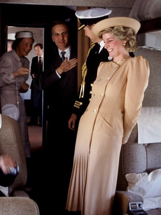 Công nương xứ Wales cười khi nói chuyện với phi hành đoàn trên máy bay trong chuyến bay tới Australia vào ngày 27/10/1985