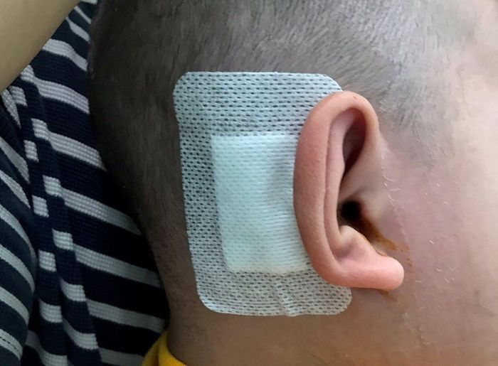 Bé trai 2,5 tuổi mắc cùng lúc 2 chứng bệnh ngay từ lúc sinh ra là điếc bẩm sinh nặng và máu khó đông (Hemophilia B). Các bác sĩ đã thực hiện ca phẫu thuật cấy ốc tai điện tử giúp trẻ nghe được.