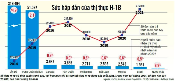 Nhiều năm trước, việc có thị thực Mỹ diện H-1B được coi như một sự đảm bảo tốt về tài chính và sự nghiệp với người lao động nước ngoài có tŕnh độ cao.