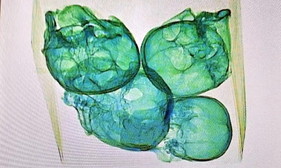 Hình ảnh 4 hộp sọ qua máy kiểm tra an ninh ở sân bay quốc tế Queretaro, Mexico. Ảnh: Reuters.