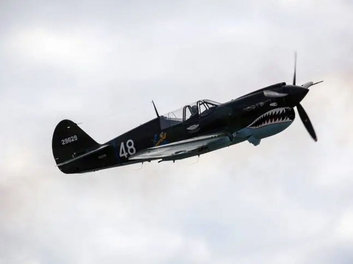 Một chiếc P-40 Warhawk sơn h́nh hàm cá mập của Phi đội Hổ bay tại một triển lăm hàng không năm 2018. Ảnh: Không quân Mỹ.