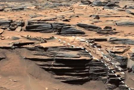 Xung quanh một số vết nứt là "quầng sáng" của đá có màu sáng hơn, mà các nhà nghiên cứu nhận thấy có khả năng giàu opal. Để opal hình thành, đá giàu silica phải tương tác với nước.