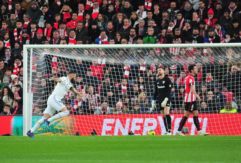 Phung phí cơ hội, chủ nhà phải trả giá. Phút 24, Marco Asensio đánh đầu lỗi từ quả tạt của Federico Valverde, vô thành tình đường kiến tạo để Benzema bắt vô-lê chân trái chéo góc, khiến thủ môn Unai Simon chôn chân. Tiền đạo Pháp nhờ đó cân bằng thành tích ghi 228 bàn tại La Liga của huyền thoại Raul Gonzalez, chỉ kém Cristiano Ronaldo với 311 bàn.