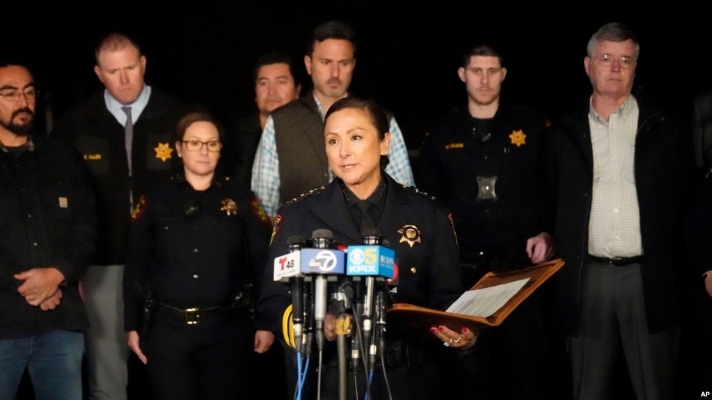 Cảnh sát trưởng Quận hat San Mateo, Christina Corpus, thông tin cho báo chí về vụ nổ súng ở Half Moon Bay, bang California, Hoa Kỳ, vào ngày 23/1/2023.