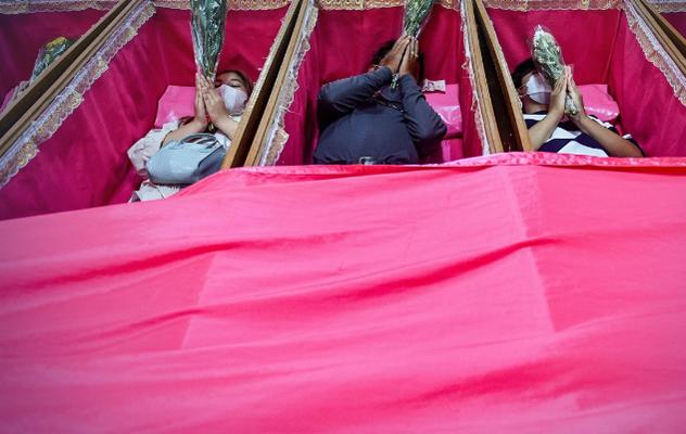 Theo như điều kỳ lạ ở tục lệ này là người dân vào nằm trong những chiếc quan tài mở nắp, tay cầm hoa và hương, tạo tư thế giống như người chết. Người Thái Lan tin rằng tục lệ này sẽ giuos loại bỏ những điều xui xẻo, đồng thời mang lại may mắn cho cả năm. Ở bên ngoài, các nhà sư không ngừng tụng kinh nguyện cầu.