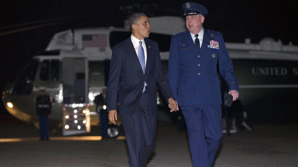 Ảnh tư liệu: Tướng hải quân Mỹ Michael Minihan và tổng thống Mỹ thời đó, Barack Obama tại căn cứ không quân Mỹ Andrew, ngày 01/01/2013. AP - Carolyn Kaster