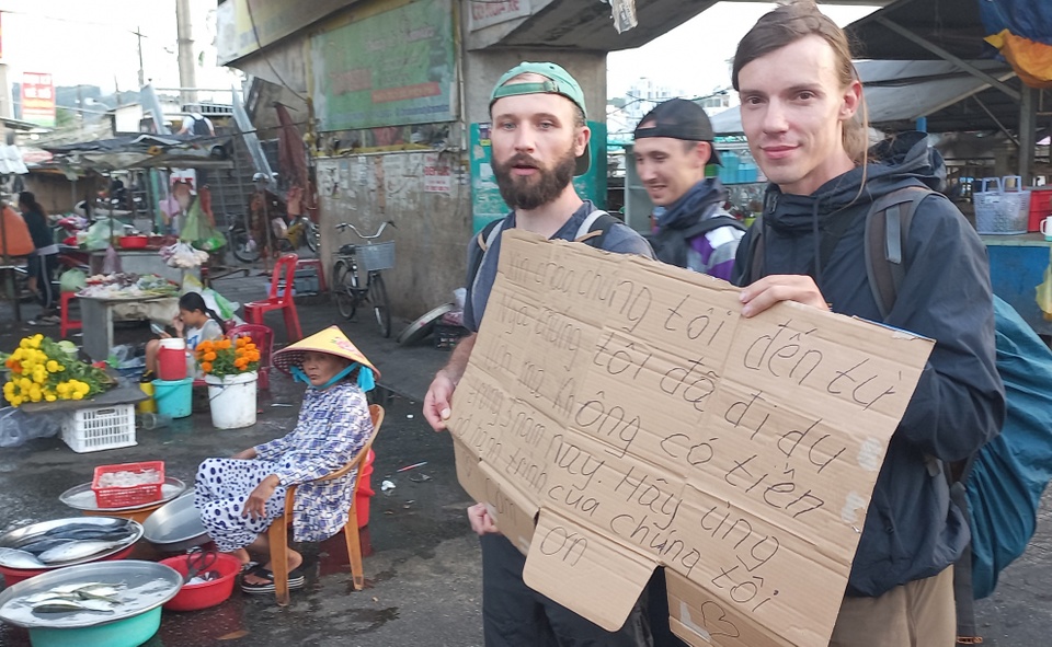 Những du khách thường dựa vào ḷng thương cảm của người dân địa phương để xin tiền cho chuyến đi của ḿnh được gọi là "begpacker". Đây là từ ghép giữa động từ beg (xin xỏ, ăn xin) và danh từ backpacker (khách du lịch bụi), theo Từ điển Macmillan. Một số người chọn mang theo tấm bảng viết lời cầu cứu bằng ngôn ngữ địa phương để xin tiền. Số khác lại kiếm tiền bằng cách hát rong hoặc bán những món đồ nhỏ. Ảnh: Reddit.