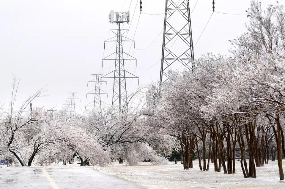 T́nh trạng cây đổ và băng tuyết tích tụ trên hệ thống điện đă gây ảnh hưởng lớn đến cơ sở hạ tầng năng lượng tại bang Texas trong những ngày qua. Ảnh: AP.