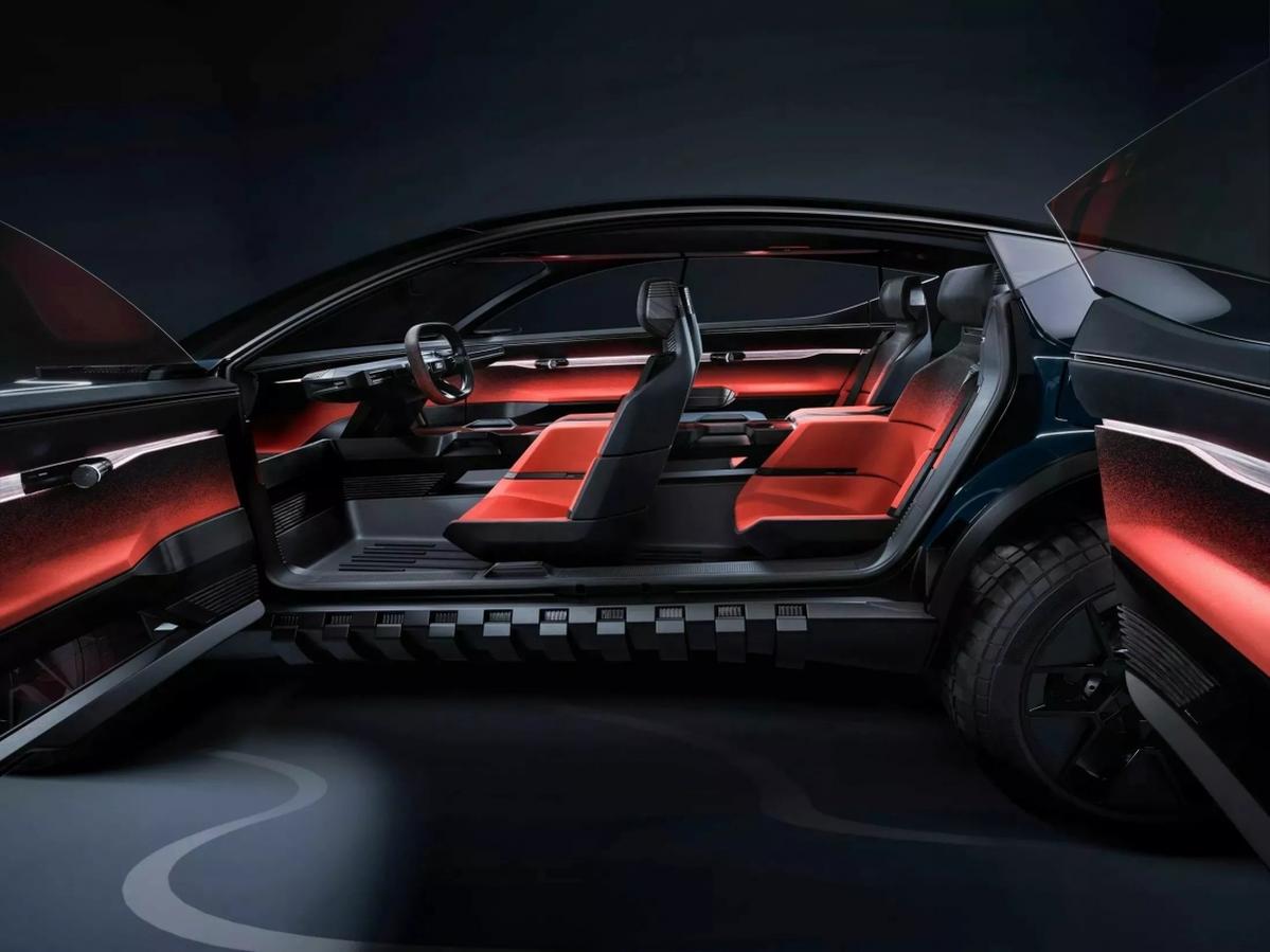 Mẫu Activesphere mới của Audi mang kiểu dáng của một chiếc coupe crossover tập trung vào khả năng chinh phục mọi loại địa hình và có nội thất đặc biệt hấp dẫn. Chiếc xe hoàn chỉnh với bốn ghế dài tích hợp tay vịn và tựa đầu, bảng điều khiển có thể xoay và vô-lăng cùng bàn đạp được xếp gọn khi xe ở chế độ lái tự động. Ngoài ra, Audi Activesphere còn được trang bị bốn tai nghe thực tế hỗn hợp được đặt trên trần xe.