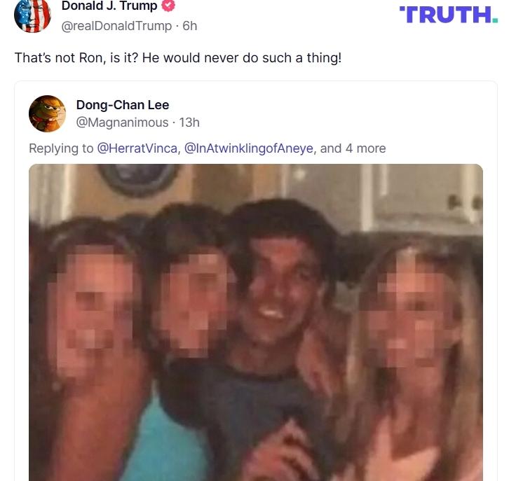 "That's not Ron, is it? He would never do such a thing!" Trump wrote sarcastically on his social media app, Truth Social.
