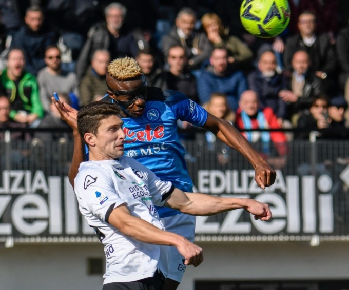 Phút 68 trận đấu ở vòng 21 Serie A, từ quả tạt bên cánh trái của Khvicha Kvaratskhelia, cầu thủ Spezia phá không tốt khiến bóng bay bổng giữa vòng cấm, tạo điều kiện cho Osimhen băng vào đánh đầu khung thành đã bỏ trống. Tiền đạo của Napoli thậm chí nhảy cao hơn cả Bartlomiej Dragowski - thủ thành có chiều cao 1,91m cùng lợi thế được dùng tay.