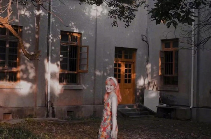 Zheng Linghua khoe bức ảnh chụp mái tóc màu hồng trên mạng xã hội.