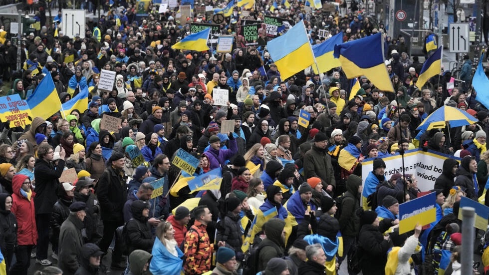 Theo như có những người biểu tình ở Đức đã đặt xác một chiếc xe tăng Nga chĩa nòng về hướng đại sứ quán Nga ở Berlin vào hgày 24/02/2023, đúng một năm Nga xâm lược Ukraina, vài chục nghìn người đã xuống đường khắp châu Âu để phản đối cuộc chiến của tổng thống Vladimir Putin.