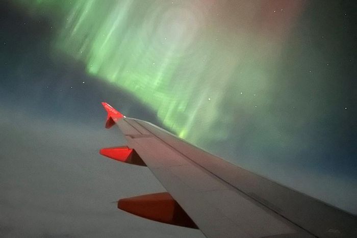 Hành khách trên máy bay của easyJet chụp lại cảnh cực quang vào tối 27/2. Ảnh: Michelle Coyle/Twitter.