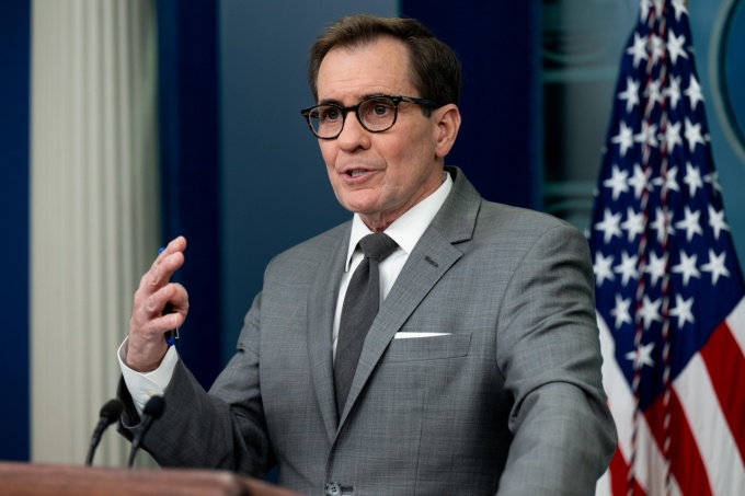 Phát ngôn viên Hội đồng An ninh Quốc gia Mỹ John Kirby tại cuộc họp báo ở Nhà Trắng ngày 27/2. Ảnh: AFP.