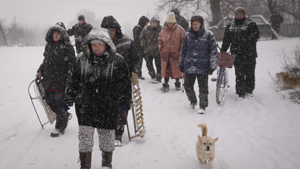 Ảnh minh họa : Người dân Ukraina đến làng Zelen, miền đông Ukraina, để nhận viện trợ nhân đạo, ngày 18/02/2023. AP - Vadim Ghirda