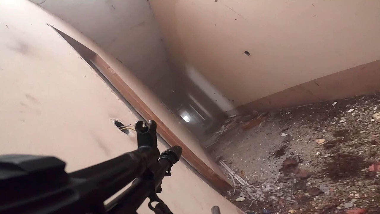 Tiếp cận lối ra vào căn nhà, một binh sĩ Nga ném lựu đạn để những người khác đột kích. Nhóm binh sĩ Nga tiến công chậm rãi, từng bước kiểm soát các vị trí trong căn nhà.