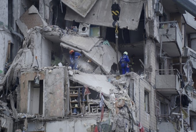 Lực lượng cứu hộ t́m kiếm người sống sót trong chung cư bị tập kích ở Dnipro, miền trung Ukraine, hồi tháng 1. Ảnh: AFP.