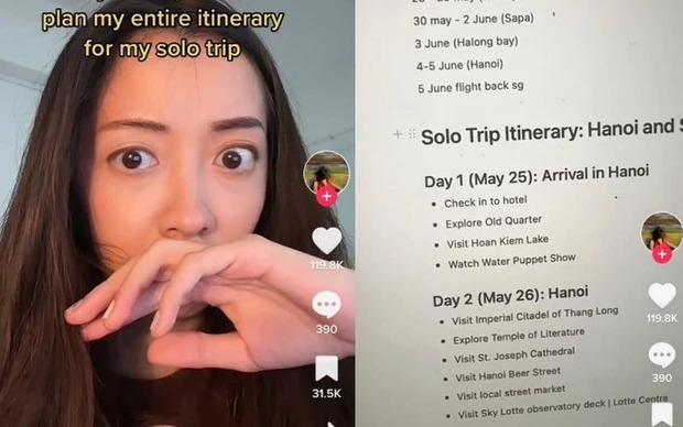 Mel chia sẻ: "Hành tŕnh do AI tạo ra chỉ để giúp tôi bắt đầu và nghiên cứu thêm về những địa điểm sẽ đến thăm. Tôi rất vui v́ video này đă làm nên điều kỳ diệu và giúp cung cấp các mẹo du lịch không chỉ cho tôi mà c̣n cho cả cộng đồng TikTok".