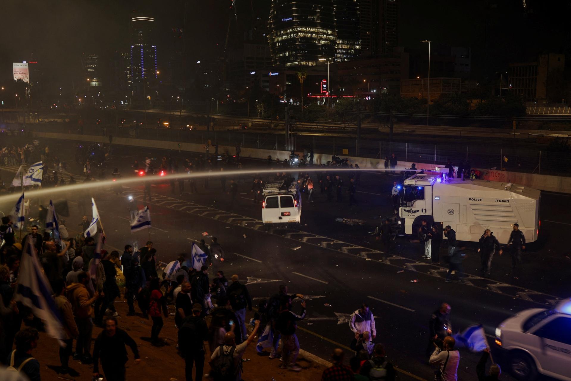 Cảnh sát Israel dùng ṿi rồng giải tán người biểu t́nh. Ảnh: Reuters.