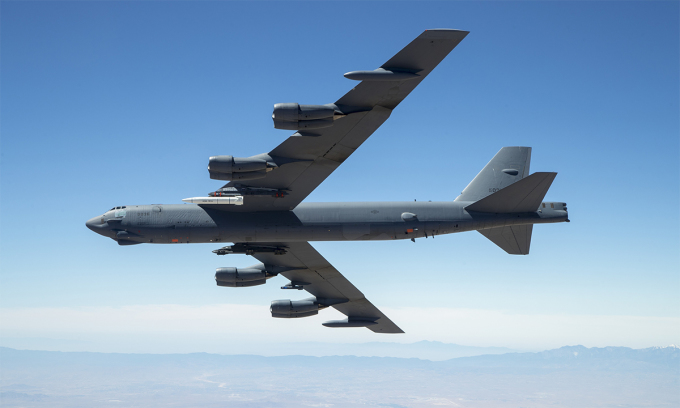 Oanh tạc cơ B-52 mang nguyên mẫu tên lửa siêu vượt âm AGM-183A trong cuộc thử nghiệm tháng 9/2020. Ảnh: USAF.
