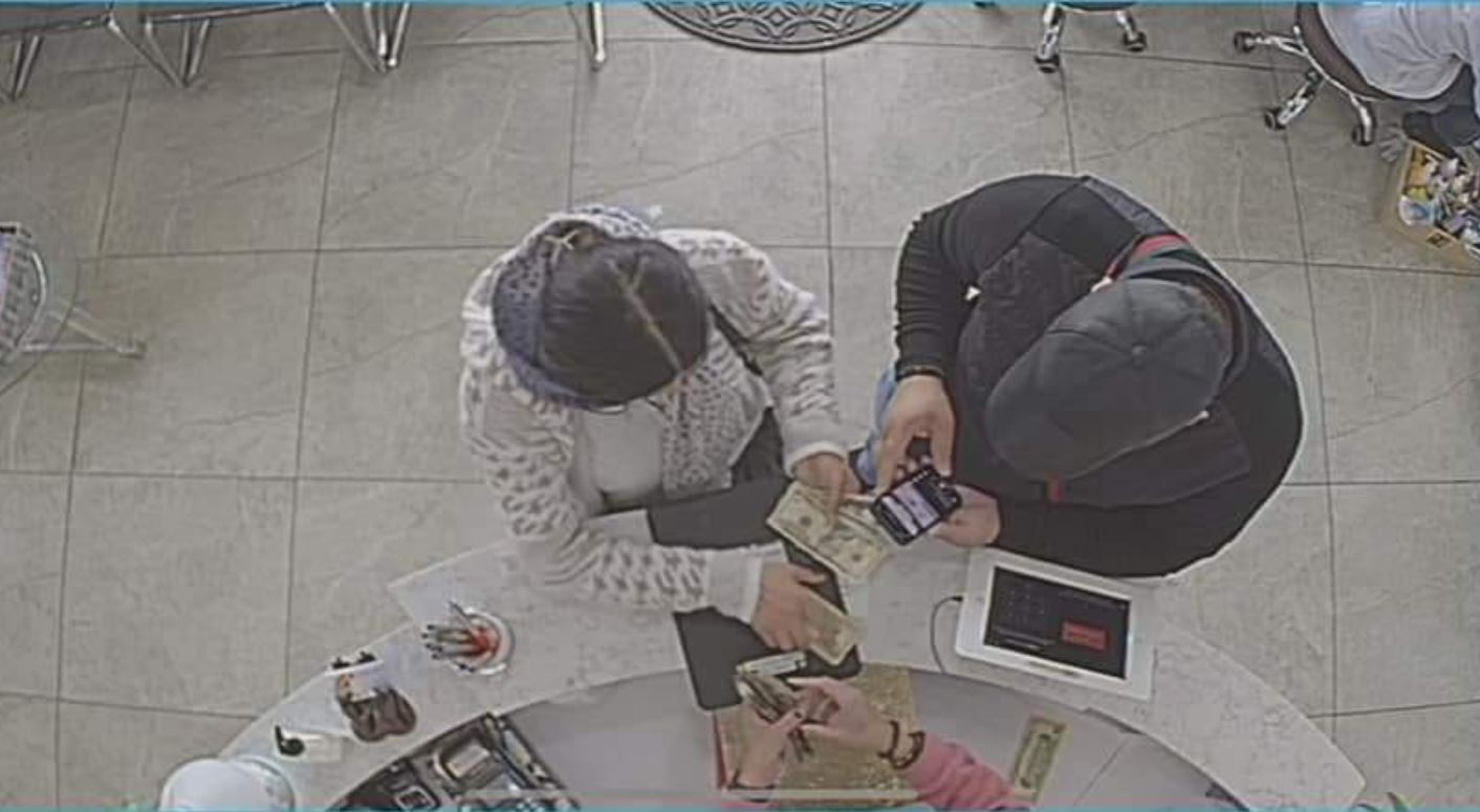 Hai kẻ gian xuất hiện trong một tiệm nail ở Utah. (Hình: Tammy Nguyễn Lưu cung cấp)