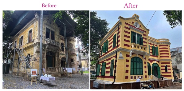 (Dự án bảo tồn, sửa chữa, chống xuống cấp nhà biệt thự 49 Trần Hưng Đạo - 46 Hàng Bài do Ban Quản lư hồ Hoàn Kiếm và phố cổ Hà Nội làm chủ đầu tư, với sự hỗ trợ kỹ thuật của các chuyên gia Pháp cùng nguồn kinh phí hơn 14 tỉ đồng)