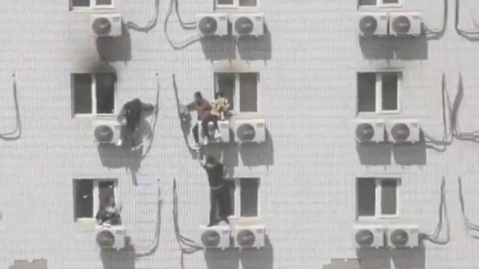 Một số người được nhìn thấy đang cố gắng giữ thăng bằng trên dàn nóng điều hòa bên ngoài trong lúc chờ giải cứu.