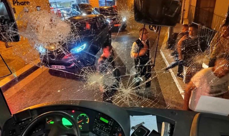 Những người bạo loạn dùng gạch đập vỡ kính xe buưt.