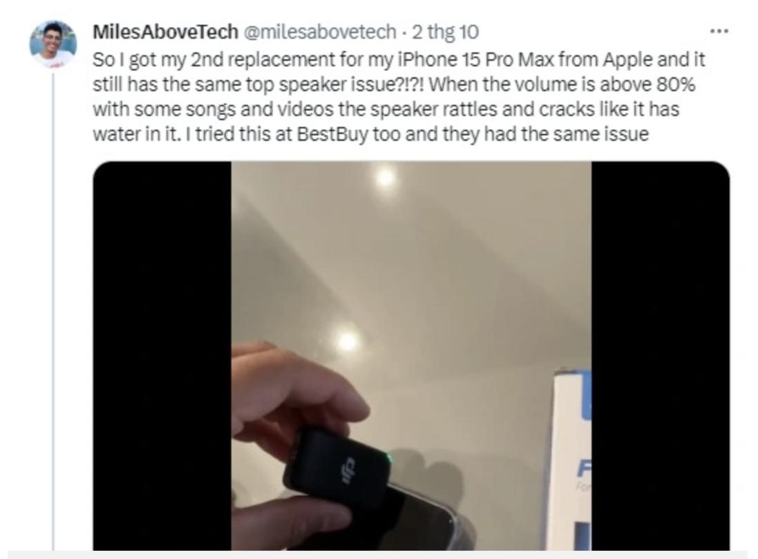 Trên diễn đàn Reddit, một người dùng iPhone 15 Pro Max với tài khoản "WallStreetKernel" cho biết loa rè "dường như là một vấn đề phổ biến" nhưng không phải ai cũng nhận ra hoặc báo cáo về nó: