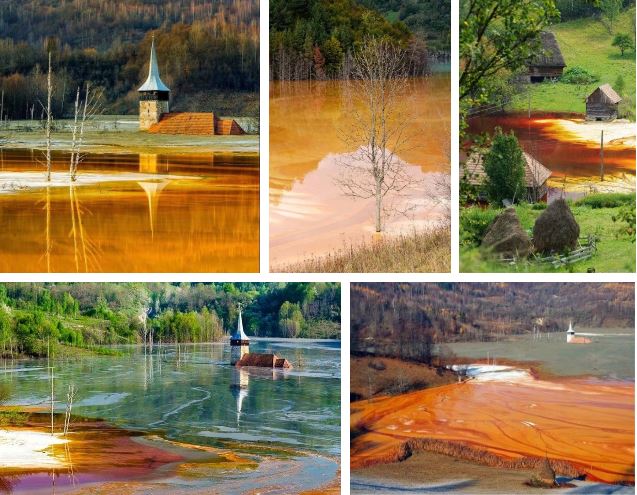 Hồ nước khổng lồ màu cam, đỏ, vàng khiến khung cảnh Geamana trở nên rực rỡ như buổi chiều tà. Với những người chưa biết sự thật, có lẽ phải thốt lên cảnh đẹp như tranh vẽ.