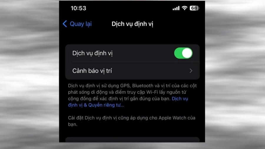 Dịch vụ vị trí là tính năng GPS của iPhone hỗ trợ bạn xem đường đi, hiển thị vị trí xung quanh để bạn có thể tìm được điểm tới và xem các vị trí quanh đó để quyết định tìm cửa hàng ăn, mua sắm, đường đi... Tính năng này rất hữu ích nhưng cũng đồng thời theo dõi chuyển động của bạn. Do đó nếu thường xuyên bật tính năng này thì bạn có thể bị thu thập dữ liệu cá nhân. Do đó bạn cần cân nhắc dịch vụ nào thì bật và cái nào tắt để vừa tiết kiệm pin, vừa bảo vệ quyền riêng tư của bản thân. Trong màn hình Quyền riêng tư, chạm vào Dịch vụ Định vị để xem các tùy chọn.