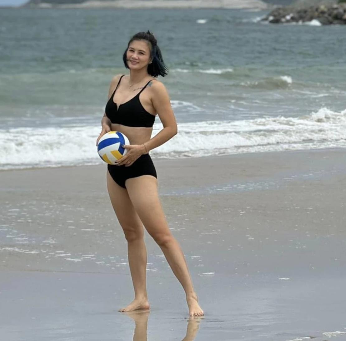 Mới đây, hoa khôi bóng chuyền Kim Huệ thu hút sự chú ý khi chia sẻ loạt ảnh mặc bikini chơi bóng chuyền trên bãi biển.
