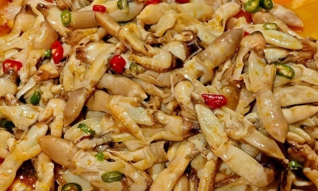 Món thịt ốc móng tay xào cay này có hương vị cay nồng, mùi thơm của ớt, tỏi thấm sâu vào thịt ốc, khiến người ta không thể cưỡng lại. Sự thêm dầu hào làm cho món ăn trở nên thơm ngon hơn.