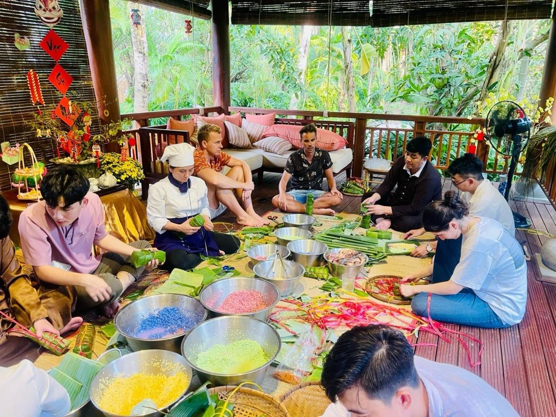 Resort tổ chức các hoạt động cho du khách t́m hiểu phong tục, văn hóa của người Việt. Tết Giáp Th́n năm nay, khu nghỉ tổ chức lễ cúng giao thừa, múa lân, có workshop dạy gói bánh chưng, bánh tét, làm hoa mai, hoa đào thủ công, làm bao ĺ x́, tặng chữ đầu năm. Ngoài ra, mỗi khách cũng được tặng một cuốn thông tin các chương tŕnh Tết, trong đó có phần giới thiệu về Tết cổ truyền và biểu tượng con giáp trong năm mới.
