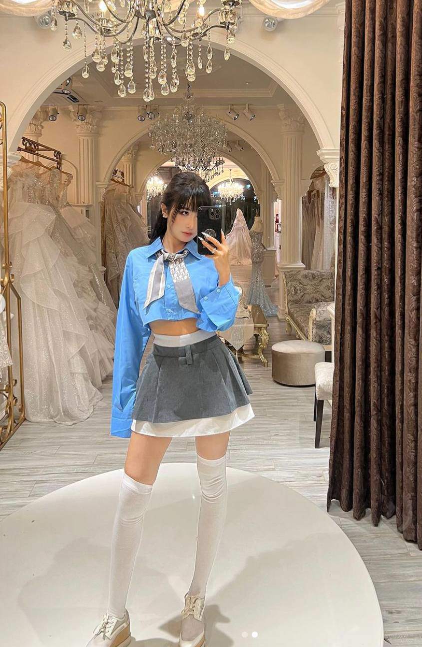 Sở hữu vóc dáng thon thả cùng gương mặt xinh đẹp, trẻ trung chẳng khác nào nữ sinh 18 tuổi. Mina Phạm hoàn toàn có thể mặc những kiểu đồ mà mình yêu thích, theo đó phong cách thời trang của cô cũng cực kỳ đa dạng, từ các kiểu váy ngắn đến những kiểu đồ cắt xẻ, khoe khéo hình thể. Mới đây, người đẹp tiếp tục nhận về nhiều lời khen với bộ cánh trẻ trung gồm chân váy và áo sơ-mi đi cùng cravat thuộc thương hiệu Dior đắt đỏ.