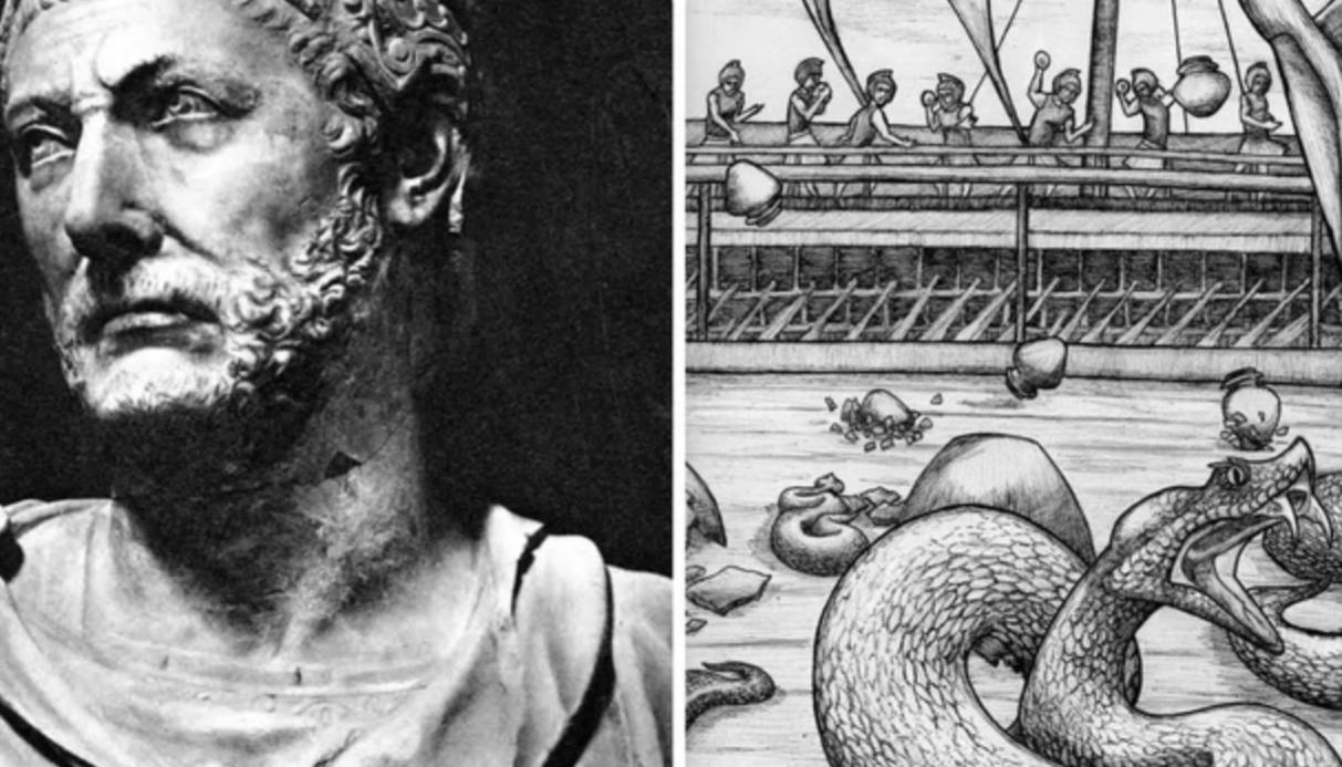 Năm 184 trước Công nguyên (TCN), Tướng Hannibal của Carthage (247 -183) có trận đối đầu trên biển với Hoàng đế Eumenes II (221 - 159) của Thổ Nhĩ Kỳ. Vốn không mạnh về hải chiến, Hannibal được xác định là sẽ thua trận.